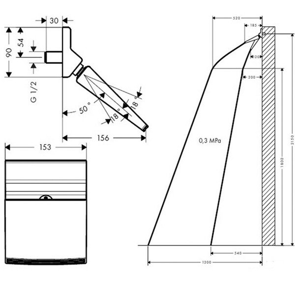 | Размер верхнего душа, мм | 150*150 |