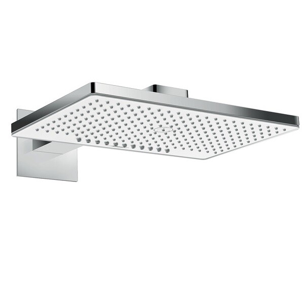 Верхний душ, Hansgrohe, Rainmaker Select, тип установки-настенный, размер душевого диска, мм-466*300, форма-прямоугольная, количество режимов-2, тип струи-Rain, RainStream, держатель-есть, размер держателя-460, внутренняя часть-необходимо заказать, цвет-белый/хром, материал душевого диска: безопасное стекло Верхний душ, Hansgrohe, Rainmaker Select, 466*300, цвет-белый/хром