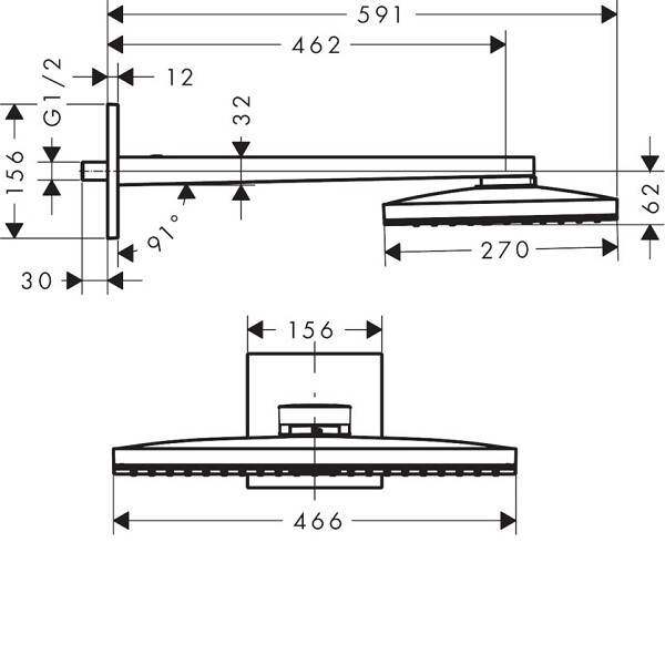 Верхний душ, Hansgrohe, Rainmaker Select, тип установки-настенный, ширина, мм-460, глубина, мм-270, высота, мм-156, форма-прямоугольная, количество режимов-1, тип струи-Rain, держатель-есть, размер держателя-460, цвет-белый/хром Верхний душ, Hansgrohe, Rainmaker Select, шгв 460*270*156, цвет-белый/хром