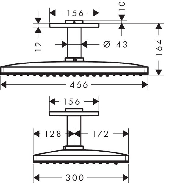 Верхний душ, Hansgrohe, Rainmaker Select, тип установки-потолочный, ширина, мм-460, глубина, мм-300, высота, мм-164, форма-прямоугольная, количество режимов-2, тип струи-Rain, RainStream, держатель-есть, размер держателя-100, цвет-черный/хром Верхний душ, Hansgrohe, Rainmaker Select, шгв 460*300*164, цвет-черный/хром