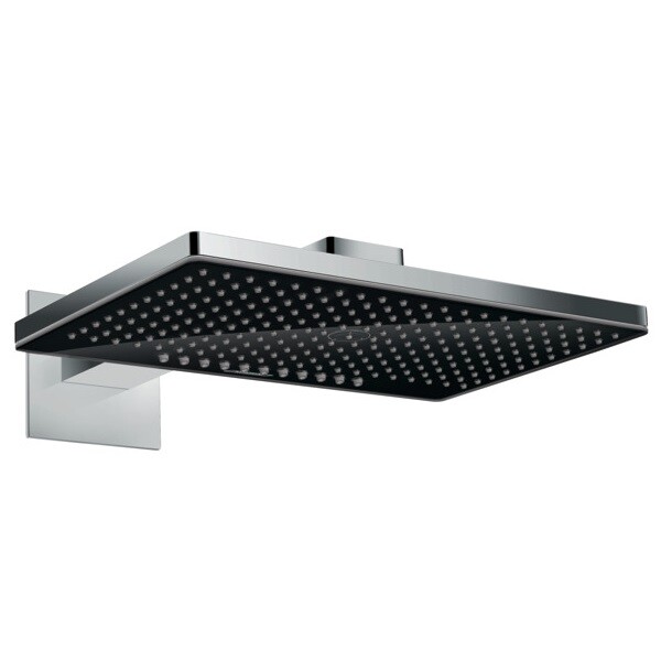 Верхний душ, Hansgrohe, Rainmaker Select, тип установки-настенный, ширина, мм-460, глубина, мм-300, высота, мм-62, форма-прямоугольная, тип струи-Rain, RainStream, держатель-есть, размер держателя-460, внутренняя часть-необходимо заказать, цвет-черный/хром Верхний душ, Hansgrohe, Rainmaker Select, шгв 460*300*62, цвет-черный/хром