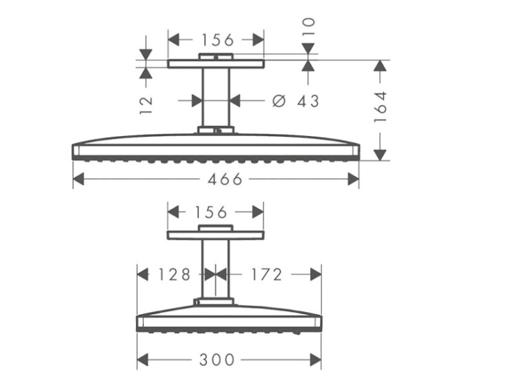 Верхний душ, Hansgrohe, Rainmaker Select, тип установки-потолочный, ширина, мм-460, глубина, мм-300, высота, мм-64, форма-прямоугольная, количество режимов-2, тип струи-Rain, RainStream, держатель-есть, размер держателя-100, цвет-белый/хром Верхний душ, Hansgrohe, Rainmaker Select, шгв 460*300*64, цвет-белый/хром