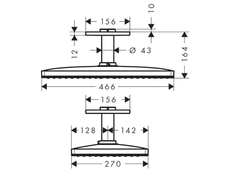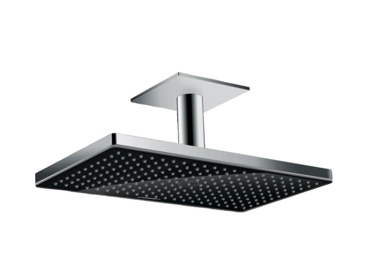 Верхний душ, Hansgrohe, Rainmaker Select, тип установки-потолочный, ширина, мм-466, глубина, мм-270, высота, мм-164, форма-прямоугольная, размер душевого диска,мм-460*270, количество режимов-1, тип струи-Rain, держатель-есть, металлическое потолочное подсоединение, размер держателя-100, материал душевого диска-безопасное стекло, цвет-черный/хром Верхний душ, Hansgrohe, Rainmaker Select, шгв 466*270*164, цвет-черный/хром