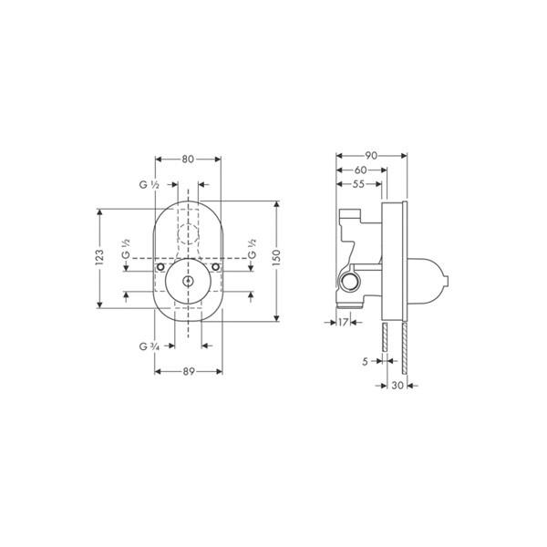 Внутренняя часть, Hansgrohe, назначение-смеситель для ванны и душа, стандарт подвода воды-1/2", не окрашен Внутренняя часть, Hansgrohe, назначение-смеситель для ванны и душа, не окрашен