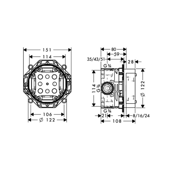 Внутренняя часть, Hansgrohe, iBox universal, назначение-для смесителя, стандарт подвода воды-1/2", комплектация- уплотнитель, 1 заглушку 3/4" Внутренняя часть, Hansgrohe, iBox universal, назначение-для смесителя