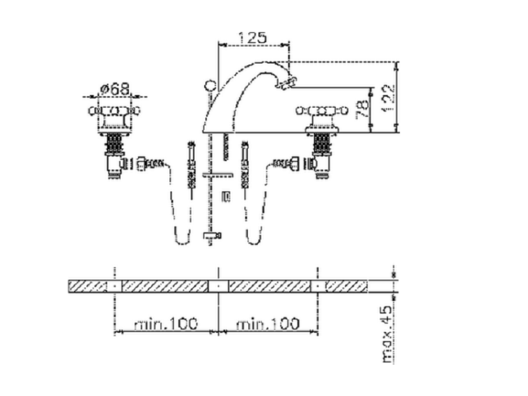 Смеситель для раковины, Cisal, Huber Victorian, тип открывания воды-двухвентильный, отверстия для монтажа-3, высота, мм-122, вынос излива, мм-125, донный клапан-есть, цвет-Chrome Смеситель для раковины, Cisal, Huber Victorian, цвет-Chrome