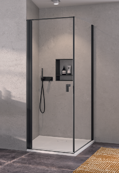Дверь, Huppe, Qube, ширина, мм-650, высота, мм-2000, открывание-маятниковое, цвет фурнитуры-черный, материал-стекло, цвет стекла-прозрачный Дверь, Huppe, Qube, шв 650*2000, черный, цвет стекла-прозрачный