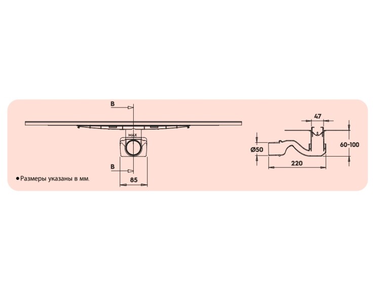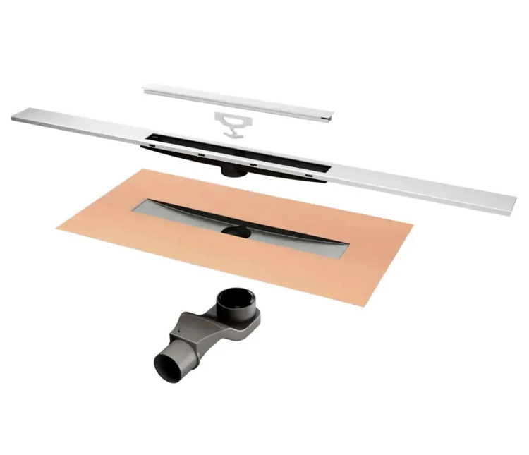 Линейный душевой трап, Huppe, River, длина, мм-600, монтаж-встраеваемый под плитку с горизонтальным выпуском, пропускная способность, л/сек-0.8, сифон-есть, в комплекте-стальной корпус душевого трапа, крышка душевого трапа, грязеуловитель, детали для регулировки высоты, ключ для подьема крышки, подрезать нельзя, материал-нержавеющая сталь, цвет-сатин матовый Линейный душевой трап, Huppe, River, дв 600, цвет-сатин матовый