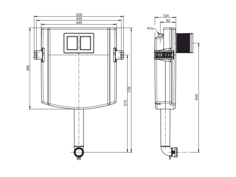 Смывной бачок скрытого монтажа, Villeroy&Boch, ViConnect, для унитаза, ширина, мм-528, глубина, мм-124, высота, мм-735, тип установки-встраиваемый, клавиша смыва-необходимо заказать, без креплений, с крепежными уголками, соединитель сливной трубы Смывной бачок скрытого монтажа, Villeroy&Boch, ViConnect, для унитаза, 528*124*735
