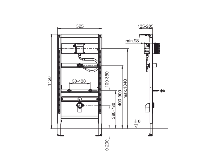 Инсталляция, Villeroy&Boch, ViConnect, для писсуара, ширина, мм-525, глубина, мм-98, высота, мм-1120, материал-сталь, тип установки-к стене, крепёж-крепления в комплекте, для монтажа сухим способом Инсталляция, Villeroy&Boch, ViConnect, для писсуара, шгв 525*98*1120