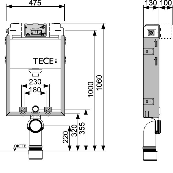 Инсталляция, TECE, TECEbox, назначение-для унитаза, ширина, мм-475, глубина, мм-130, высота, мм-1060, объем сливного бачка, л-10, крепёж-есть Инсталляция для унитаза, TECE, TECEbox, шгв 475*130*1060 (старый арт 9370000)