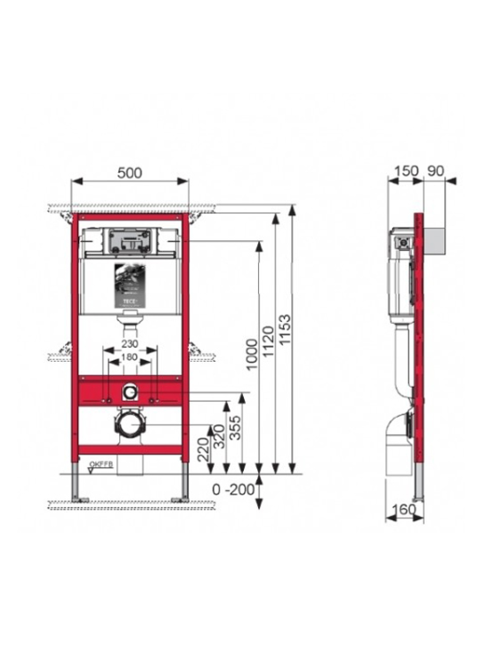 Инсталляция, TECE, TECEprofil, назначение-для унитаза, ширина, мм-500, глубина, мм-150, высота, мм-1120, материал-металл, тип установки-встраиваемый, тип смыва-двойной, объем сливного бачка, л-10, клавиша смыва-необходимо заказать, тип управления-механический, крепеж-необходимо заказать Инсталляция для унитаза, TECE, TECEprofil, шгв 500*150*1120