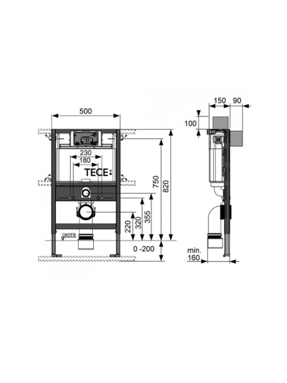 Инсталляция, TECE, TECEprofil, назначение-для унитаза-биде, ширина, мм-500, глубина, мм-150, высота, мм-820, материал-металл, тип установки-встраиваемый, тип смыва-двойной, объем сливного бачка, л-10, клавиша смыва-необходимо заказать, крепления-в комплекте Инсталляция для унитаза-биде, TECE, TECEprofil, шгв 500*150*820