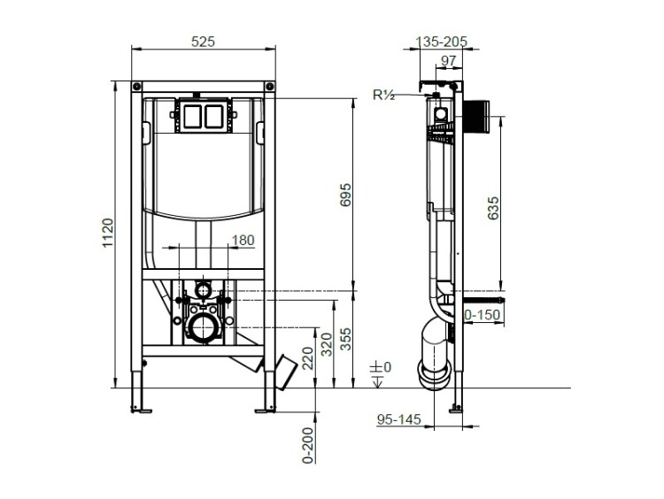 Инсталляция, Villeroy&Boch, ViConnect, назначение-для унитаза, ширина, мм-525, глубина, мм-135, высота, мм-1120, материал-сталь, тип установки-встраиваемый, тип смыва-двойной, объем сливного бачка, л-7,5-4,5 л / 4-2 л, клавиша смыва-необходимо заказать, крепления в комплекте Инсталляция для унитаза, Villeroy&Boch, ViConnect, шгв 525*135*1120