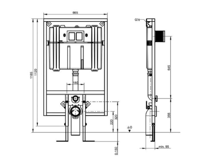 Инсталляция, Villeroy&Boch, ViConnect, для унитаза, ширина, мм-665, глубина, мм-95, высота, мм-1185, материал-сталь, тип установки-встраиваемый, клавиша смыва-необходимо заказать, крепёж-крепления в комплекте, самонесущая конструкция, компакт, с порошковым напылением, предварительно полностью смонтированная, включая ножки Инсталляция, Villeroy&Boch, ViConnect, для унитаза, шгв 665*95*1185
