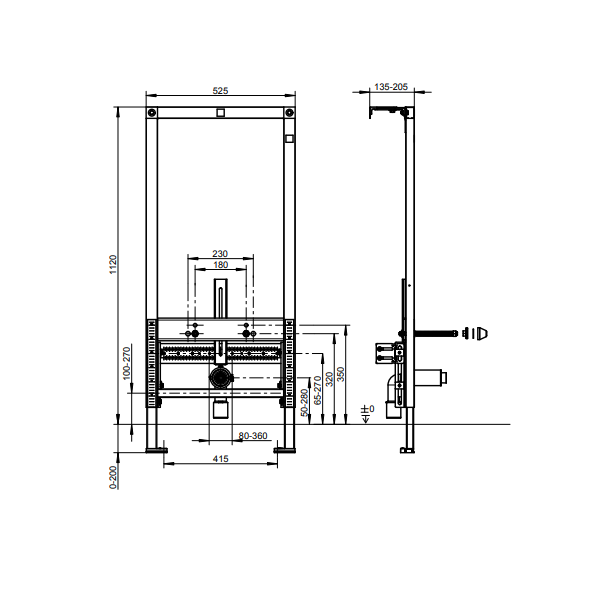 Инсталляция, Villeroy&Boch, ViConnect, для биде, ширина, мм-525, глубина, мм-100, высота, мм-1120, материал-сталь, тип установки-к стене, крепёж-крепления в комплекте Инсталляция, Villeroy&Boch, ViConnect, для биде, шгв 525*100*1120