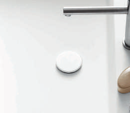 Донный клапан, ARBI, нажимной (Stop&Go), форма крышки-круглая, материал крышки-Corian, цвет-белый Донный клапан, ARBI, цвет-белый