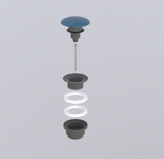Донный клапан, CIELO, универсальный, Click Clack, 1 1/4", форма крышки-круглая, диаметр крышки, мм-72, материал крышки-керамика, отделка клапана-Cemento, цвет крышки-Oltremare Донный клапан, CIELO, универсальный, 1 1/4", цвет-Cemento/Oltremare