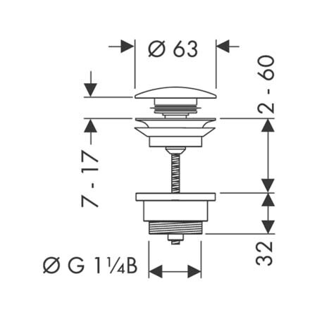 Донный клапан, Hansgrohe, для раковин и биде, с переливом, нажимной push-open, 1 1/4", форма крышки-круглая, диаметр крышки, мм-63, материал сливной пробки-латунь, цвет-хром Донный клапан, Hansgrohe, для раковин и биде, с переливом, 1 1/4", хром