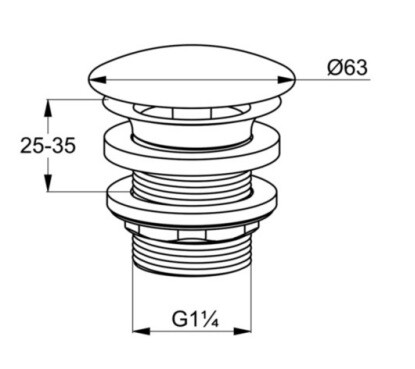 Донный клапан, Kludi, для раковин без перелива, незапираемый, 1 1/4", форма крышки-круглая, диаметр крышки, мм-63, материал крышки-металл, цвет-хром Донный клапан, Kludi, для раковин, 1 1/4", цвет-хром