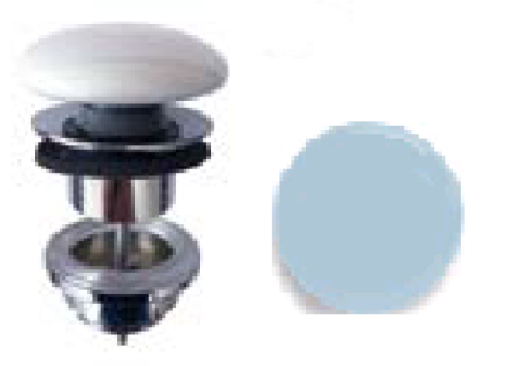 Донный клапан, Scarabeo, для раковин, нажимной Click Clack, 1 1/4", форма крышки-круглая, диаметр крышки, мм-72, материал клапана-латунь, цвет клапана-хром, материал крышки-керамика, цвет крышки-Air glossy Донный клапан, Scarabeo, для раковин, 1 1/4", цвет-хром/Air glossy