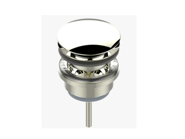 Донный клапан, THG, 1 1/4, диаметр, мм-63, для раковины, тип-Clic Clac, форма крышки-круглая, цвет-никель Донный клапан, THG, 1 1/4, диаметр, мм-63, для раковины, цвет-никель