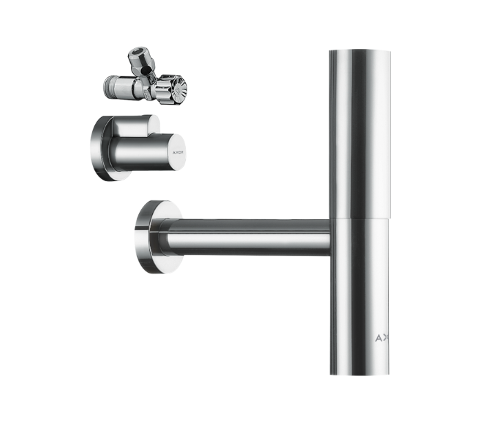 Сифон, Axor, Flowstar, 1 1/4", дизайнерский, комплект поставки-2 угловых вентиля, 2 крышки, диапазон регулировки: 65 - 165 мм, расстояние до стены 330 мм, гидрозатвор - высота подпора 75 мм, цвет-хром Сифон, Axor, Flowstar, 1 1/4", цвет-хром