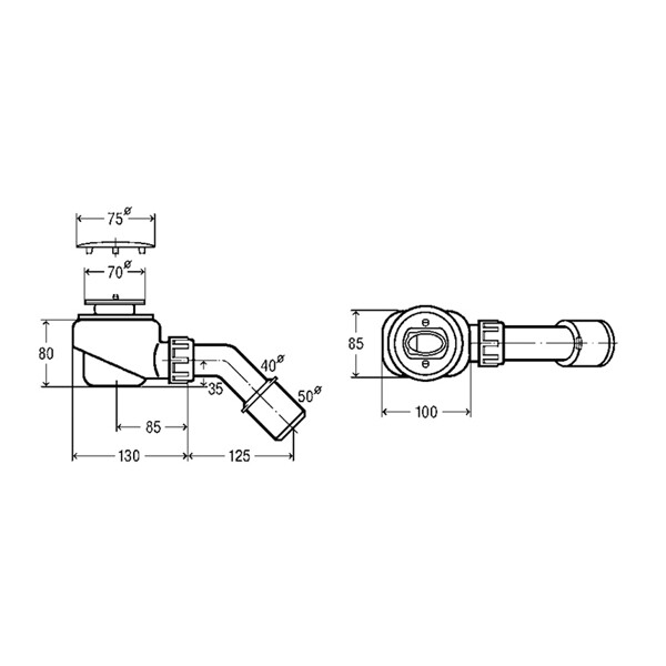 Сифон, Viega, Domoplex, назначение-для душевых поддонов, ширина, мм-80, глубина, мм-225, высота, мм-80, тип-со съемным устройством для защиты от неприятного запаха, с отводом 45°, размер ввод/отвод-40/50, материал-пластик, цвет-хром Сифон для душевых поддонов, Viega, Domoplex, цвет-хром