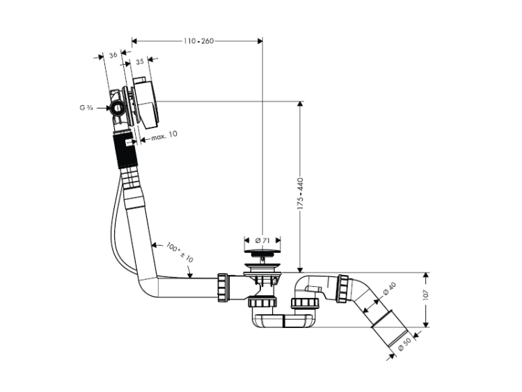 Слив-перелив, Hansgrohe, Exafill S, вид-для ванны, тип-с наливом, состоит из: сифон для ванны (56373000), скрытая часть Exafill S, для стандартных ванн, ¾’ (58115180), Exafill S внешняя часть (58117XXX), накладки-есть, цвет-хром Слив-перелив для ванны, Hansgrohe, Exafill S, цвет-хром