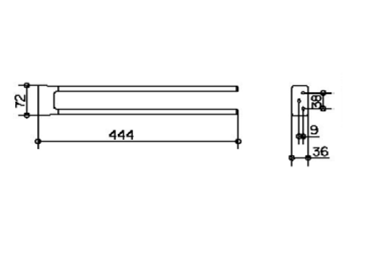 Полотенцедержатель, Keuco, Industrie 14, двойной, неподвижный, ширина, мм-72, глубина, мм-450, высота, мм-36, тип установки-настенный, материал-нержавеющая сталь, крепеж-есть, цвет-хром Полотенцедержатель, Keuco, Industrie 14, шгв 36*450*38, цвет-хром