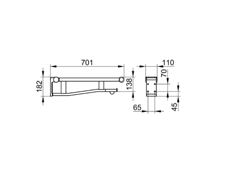 Поручень, Keuco, Plan Care, складной, ширина, мм-110, глубина, мм-701, высота, мм-182, тип установки-настенный, без креплений, цвет-алюминий серебристый анодированный/светло-серый, откидывается наверх, исполнение с ограничением хода, верх поручня имеет пластиковую оболочку, со съемным держателем туалетной бумаги Поручень, Keuco, Plan Care, складной, шгв 110*701*182, цвет-алюминий серебристый анодированный/светло-серый