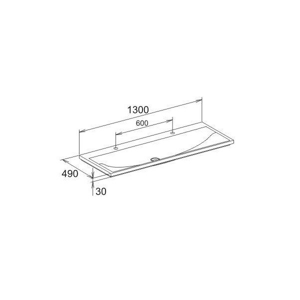 Раковина, Keuco, Royal Reflex, ширина, мм-1300, глубина, мм-490, высота, мм-30, отверстия для смесителя-два, декор-без декора, материал-минеральное литье, цвет-альпийский белый Раковина, Keuco, Royal Reflex, шгв 1300*490*30, цвет-альпийский белый