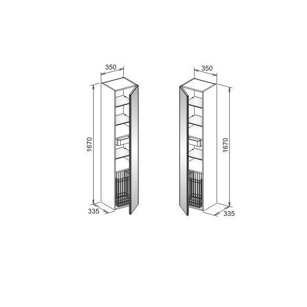 Шкаф-пенал, Keuco, Royal Reflex, ширина, мм-350, глубина, мм-335, высота, мм-1670, дверцы-есть, открывание дверей-распашное, петли-справа, цвет-антрацит, декор-без декора Шкаф-пенал, Keuco, Royal Reflex, шгв 350*335*1670, петли-справа, цвет-антрацит