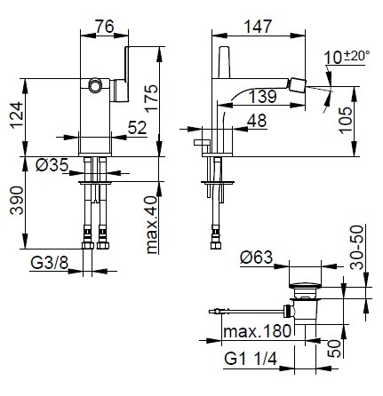 Смеситель для биде, Keuco, Edition 11, тип открывания воды-однорычажный, тип регулирования воды-керамический картридж, отверстия для монтажа-1, высота, мм-124, вынос излива, мм-139, донный клапан-есть, тип подводки-гибкая, стандарт подвода воды-3/8", цвет-черный матовый Смеситель для биде, Keuco, Edition 11, цвет-черный матовый