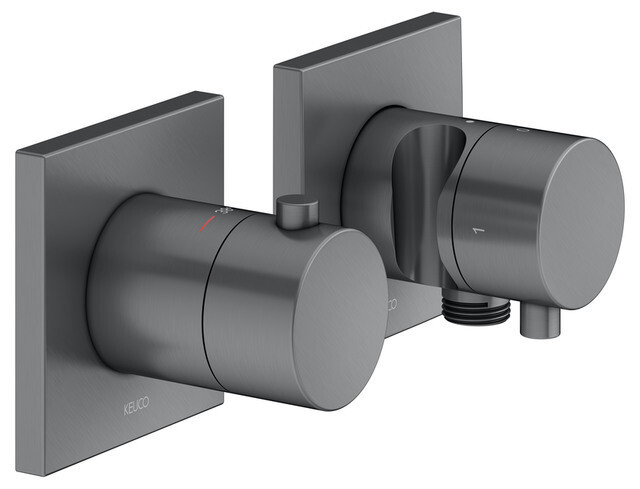 Смеситель для душа, Keuco, Edition 11, тип открывания воды-вентильный, тип регулирования воды-термостатический картридж, монтаж-настенный встраиваемый, отверстия для монтажа-2, внутренняя часть-необходимо заказать, на 2 потребителя, шланговое подключение с держателем для ручного душа-в комплекте, цвет-хром черный шлифованный Смеситель для душа, Keuco, Edition 11, термостат, 2 потребителя, с шланговым подключением и держателем для ручного душа, цвет-хром черный шлифованный
