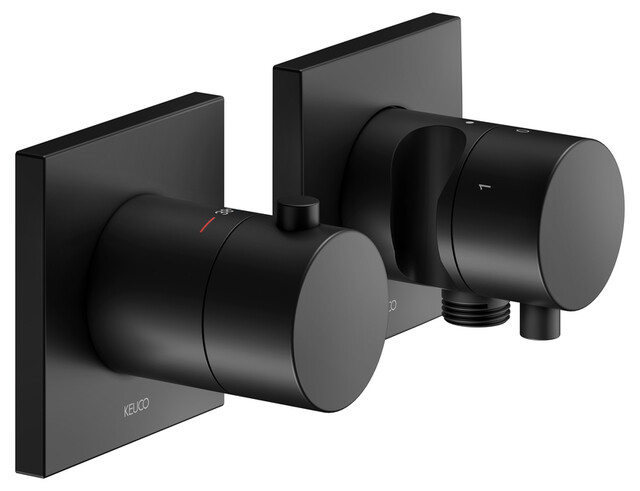 Смеситель для душа, Keuco, Edition 11, тип открывания воды-вентильный, тип регулирования воды-термостатический картридж, монтаж-настенный встраиваемый, отверстия для монтажа-2, внутренняя часть-необходимо заказать, на 3 потребителя, шланговое подключение с держателем для ручного душа-в комплекте, цвет-черный матовый Смеситель для душа, Keuco, Edition 11, термостат, 3 потребителя, с шланговым подключением и держателем для ручного душа, цвет-черный матовый