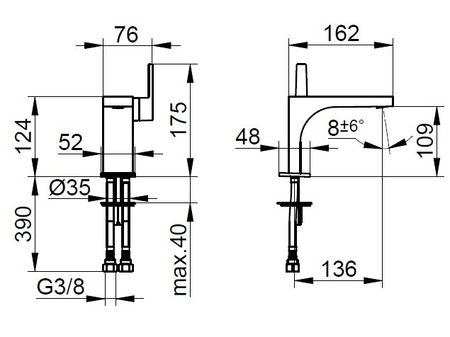 Смеситель для раковины, Keuco, Edition 11, тип открывания воды-однорычажный, тип регулирования воды-керамический картридж, монтаж-на раковину/столешницу, отверстия для монтажа-1, высота, мм-124, вынос излива, мм-136, тип излива-неподвижный, донный клапан-отсутствует, тип подводки-гибкая, стандарт подвода воды-3/8", цвет-хром Смеситель для раковины, Keuco, Edition 11, без донного клапана, цвет-хром