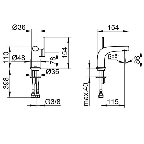 Смеситель для раковины, Keuco, Edition 400, тип открывания воды-однорычажный, тип регулирования воды-керамический картридж, отверстия для монтажа-1, высота, мм-110, вынос излива, мм-154, тип подводки-гибкая, цвет-хром Смеситель для раковины, Keuco, Edition 400, цвет-хром
