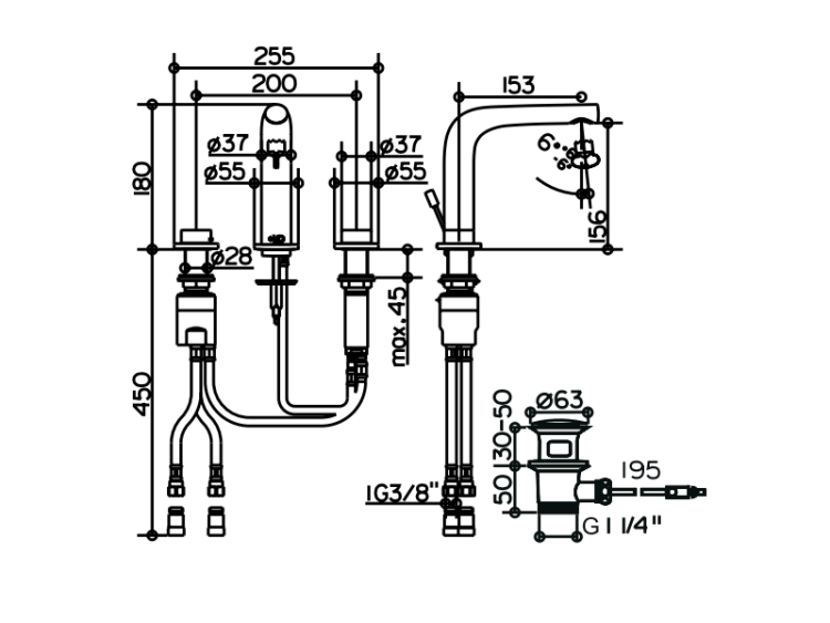 Смеситель для раковины, Keuco, Edition 400, тип открывания воды-двухвентильный, тип установки-на раковину, отверстия для монтажа-3, высота, мм-180, вынос излива, мм-153, донный клапан-есть, тип подводки-гибкая, стандарт подвода воды-3/8", цвет-хром Смеситель для раковины, Keuco, Edition 400, цвет-хром