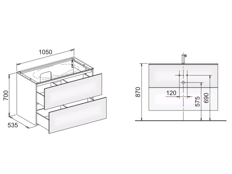 Тумба под раковину, Keuco, Edition 11, ширина, мм-1050, глубина, мм-535, высота, мм-700, форма мебели-прямоугольная, раковина-необходимо заказать, ящики-2, открывание-нажимное Push-to-Open, цвет-антрацит Тумба под раковину, Keuco, Edition 11, шгв 1050*535*700, раковина-необходимо заказать, цвет-антрацит