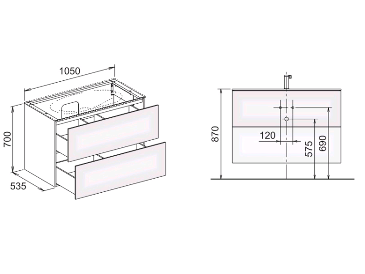 Тумба под раковину, Keuco, Edition 11, ширина, мм-1050, глубина, мм-535, высота, мм-700, форма мебели-прямоугольная, раковина-необходимо заказать, ящики-2, открывание-выдвижное, материал корпуса-структурный лак, материал фасада-структурный лак, цвет-трюфель, без декора Тумба под раковину, Keuco, Edition 11, шгв 1050*535*700, раковина-необходимо заказать, цвет-трюфель