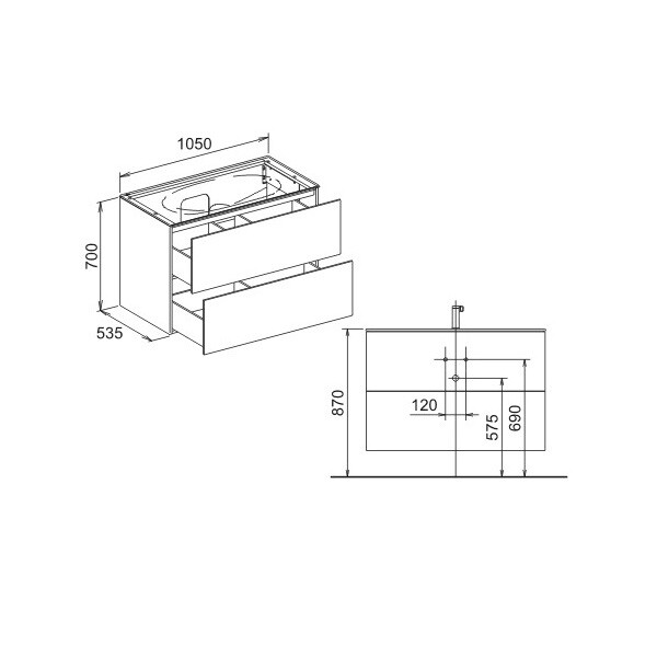 Тумба под раковину, Keuco, Edition 11, ширина, мм-1050, глубина, мм-535, высота, мм-700, форма мебели-прямоугольная, раковина-необходимо заказать, ящики-2, открывание-выдвижное, цвет-трюфель, декор-без декора Тумба под раковину, Keuco, Edition 11, шгв 1050*535*700, раковина-необходимо заказать, цвет-трюфель