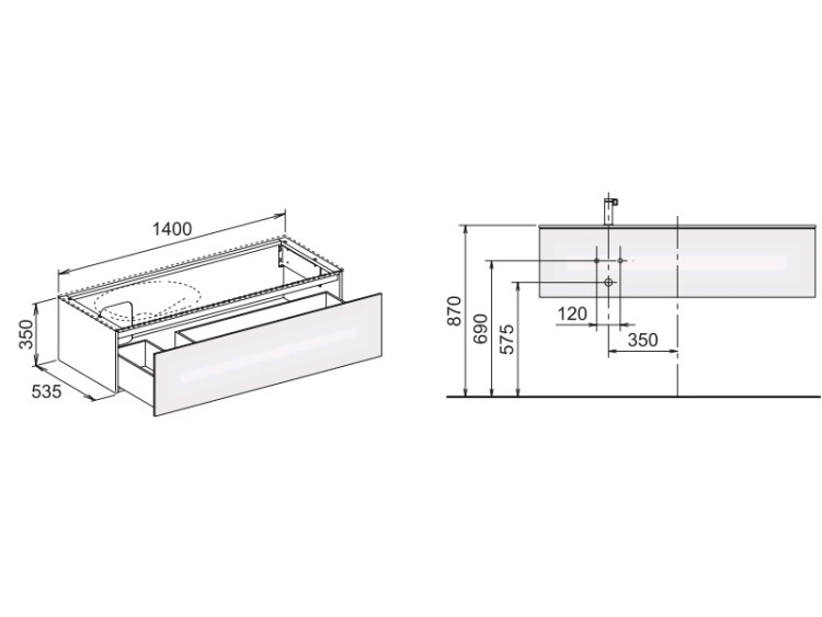 Тумба под раковину, Keuco, Edition 11, ширина, мм-1400, глубина, мм-535, высота, мм-350, форма мебели-прямоугольная, раковина-необходимо заказать, ящики-1, открывание-нажимное Push-to-Open, комплектация-вырез под сифон для чаши ум-ка слева, пластиковый сифон 1 1/4*32, 2 передвижных ящика для хранения,мм-190*70*413, цвет-белый Тумба под раковину, Keuco, Edition 11, шгв 1400*535*350, раковина-необходимо заказать, цвет-белый