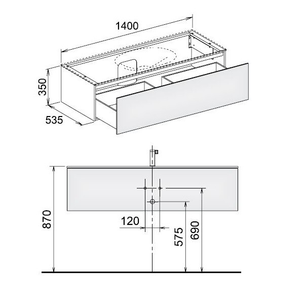 Тумба под раковину, Keuco, Edition 11, ширина, мм-1400, глубина, мм-535, высота, мм-350, форма мебели-прямоугольная, раковина-необходимо заказать, вырез под раковину-один, ящики-1, открывание-выдвижное, цвет-белый лакированный, декор-без декора Тумба под раковину, Keuco, Edition 11, шгв 1400*535*350, раковина-необходимо заказать, цвет-белый лакированный