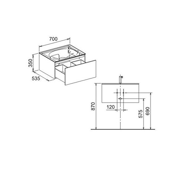 Тумба под раковину, Keuco, Edition 11, ширина, мм-700, глубина, мм-535, высота, мм-350, форма мебели-прямоугольная, ящики-1, открывание-выдвижное, цвет-белый, декор-без декора Тумба под раковину, Keuco, Edition 11, шгв 700*535*350, цвет-белый