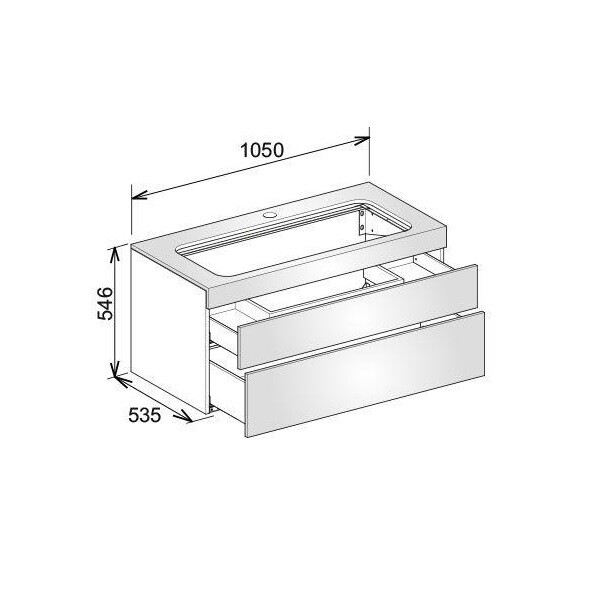 Тумба под раковину, Keuco, Edition 400, ширина, мм-1050, глубина, мм-535, высота, мм-546, тип установки-подвесной, форма мебели-прямоугольная, раковина-необходимо заказать, вырез под раковину-один, вырез под смеситель-один, ящики-2, открывание-выдвижное, цвет-белый матовый Тумба под раковину, Keuco, Edition 400, шгв 1050*535*546, раковина-необходимо заказать, цвет-белый матовый