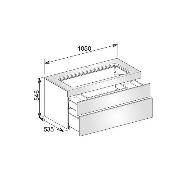 Тумба под раковину, Keuco, Edition 400, ширина, мм-1050, глубина, мм-535, высота, мм-546, тип установки-подвесной, форма мебели-прямоугольная, раковина-необходимо заказать, вырез под раковину-один, вырез под смеситель-один, ящики-2, открывание-выдвижное, цвет-кашемир матовый Тумба под раковину, Keuco, Edition 400, шгв 1050*535*546, раковина-необходимо заказать, цвет-кашемир матовый