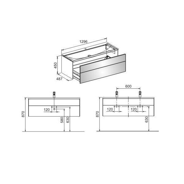 Тумба под раковину, Keuco, Royal Reflex, ширина, мм-1296, глубина, мм-450, высота, мм-487, форма мебели-прямоугольная, раковина-необходимо заказать, ящики-2, открывание-выдвижное, цвет-белый глянцевый Тумба под раковину, Keuco, Royal Reflex, шгв 1296*450*487, раковина-необходимо заказать, цвет-белый глянцевый