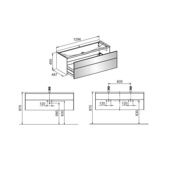 Тумба под раковину, Keuco, Royal Reflex, ширина, мм-1296, глубина, мм-450, высота, мм-487, форма мебели-прямоугольная, раковина-необходимо заказать, ящики-2, открывание-выдвижное, цвет-магнолия Тумба под раковину, Keuco, Royal Reflex, шгв 1296*450*487, раковина-необходимо заказать, цвет-магнолия