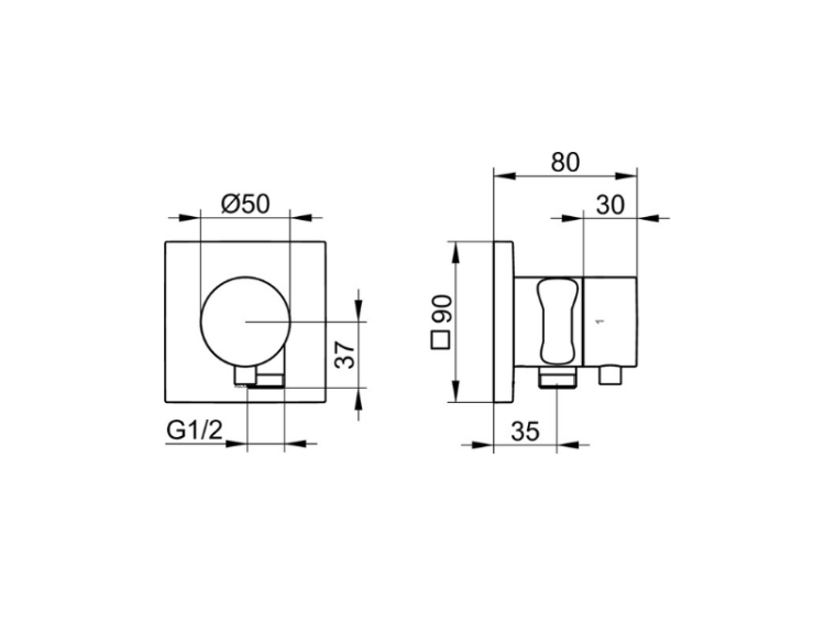 Вентиль, Keuco, IXMO, тип вентиля-запорный/переключающий, 1/2", тип установки-встраиваемый, внутренняя часть-необходимо заказать, цвет-хром черный матовый, вывод для шланга, держатель для душа Вентиль, Keuco, IXMO, 1/2", цвет-хром черный матовый